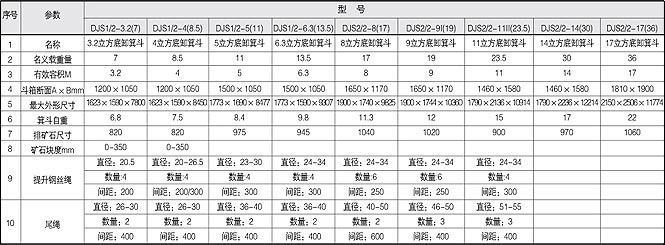 底卸式箕斗技術(shù)參數(shù):